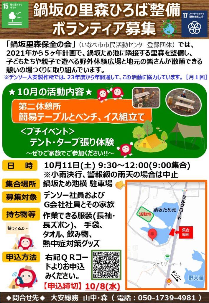 ●【募集】10/11(土)鍋坂里森ひろば整備ボランティア