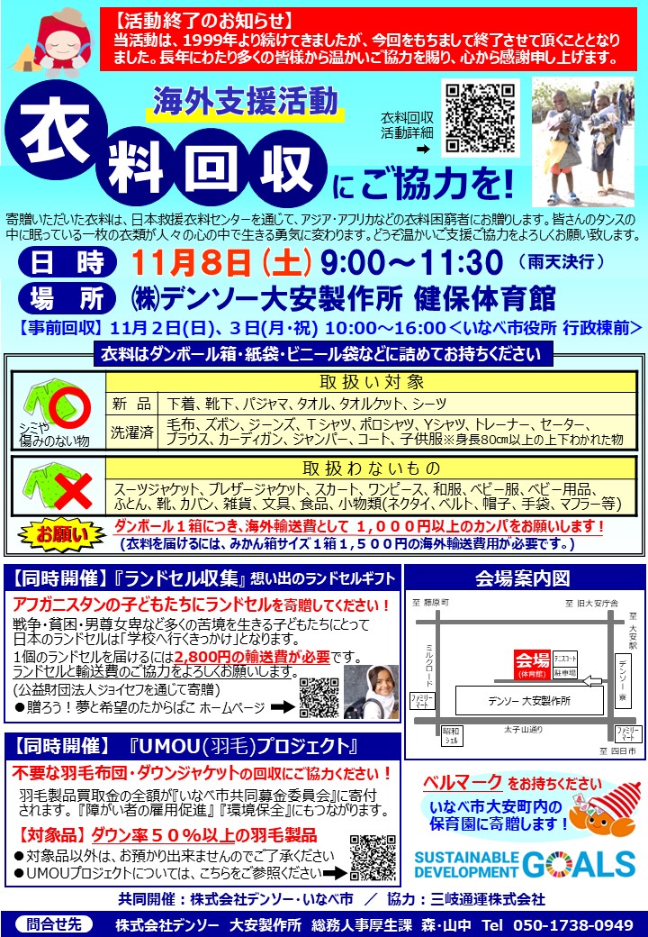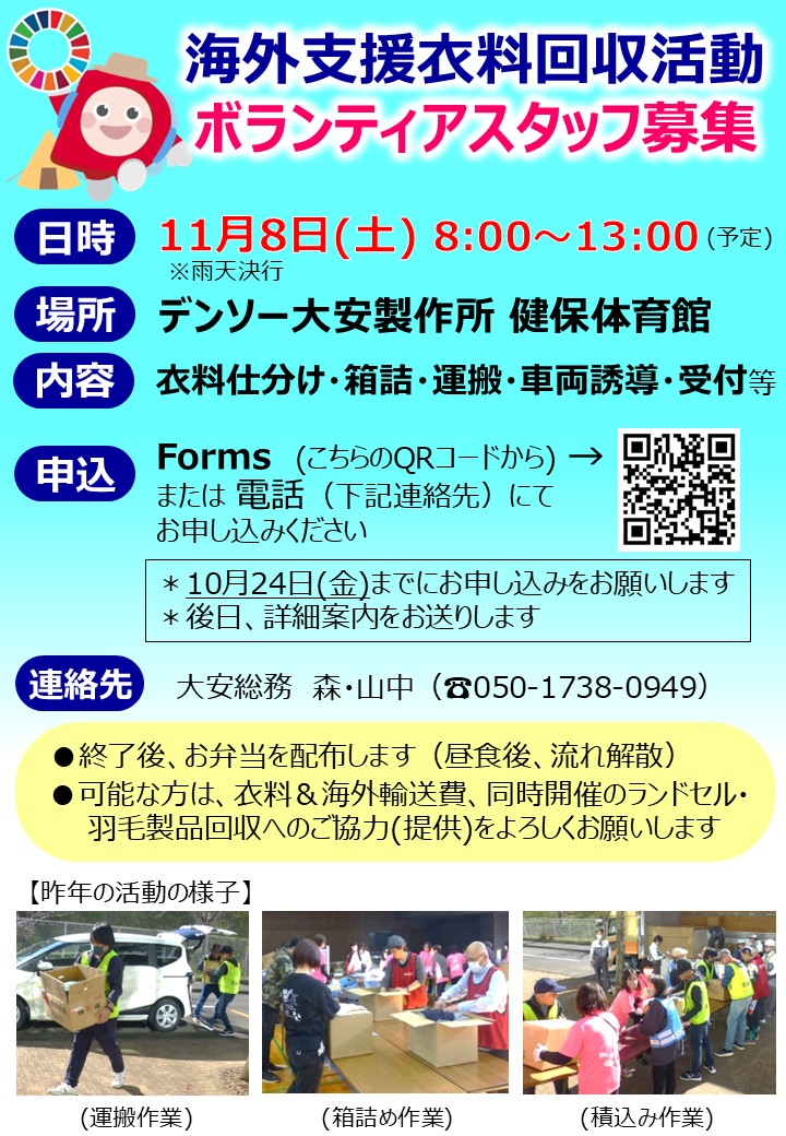 ●【募集】11/8(土)海外支援衣料回収活動ボランティア