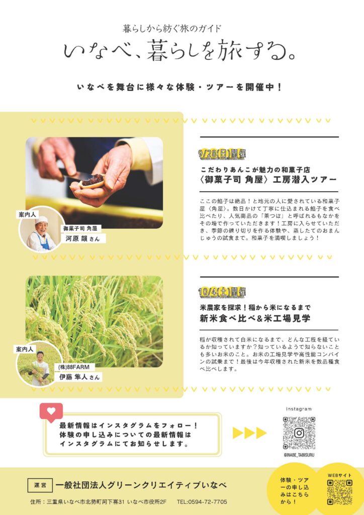 いなべを舞台に様々な体験・ツアーを開催。今回は、2つの秋の体験イベントをご案内します。